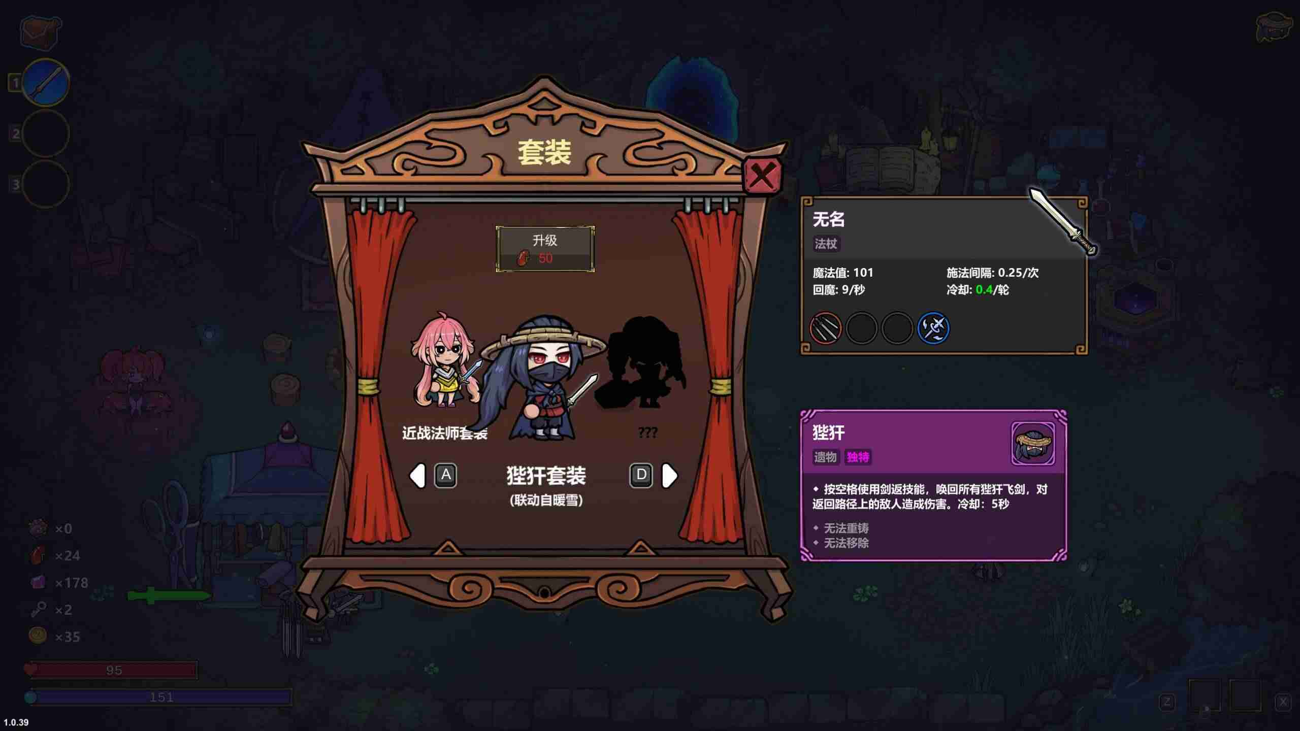 其独特道具狴犴的特性是按照一定时间收回已经射出的飞剑,而飞剑本身正是本构筑的核心。