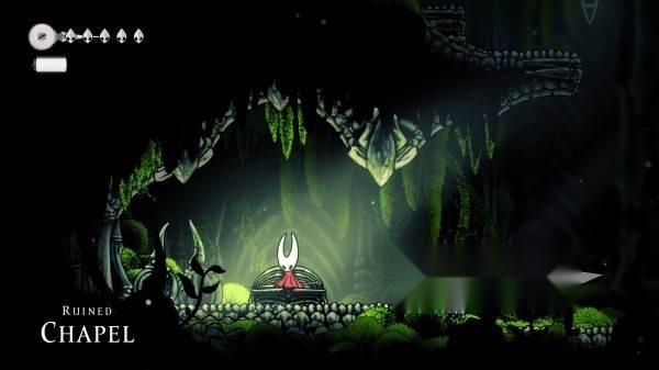 穿过此区域并爬上多个房间后,可以到达带有长椅的颓败教堂(建议在此休息,战败后可从此处重生)。从教堂长椅走右侧平台往往上层走,斩断左侧挡路的苔藓即可进入苔藓之母的BOSS战区域。