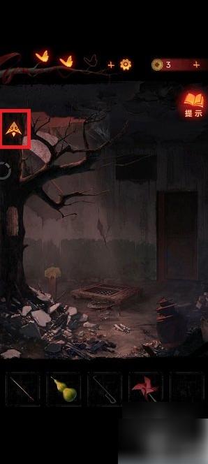 2、点击这个黄色箭头就可以完成爬树,成功爬到树上继续你的解谜;
