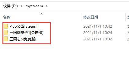 4、接着进入到游戏下载盘符中,双击其中的"mystream"文件夹。