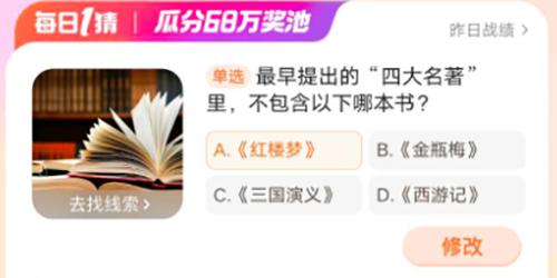 - 09-20淘宝大赢家最早提出的四大名著里不包含以下哪本书
