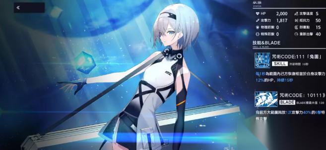第二个角色是界限,界限这个角色是一个典型的辅助型角色,目前来说的话,游戏中辅助型角色的强度不算很高,而界限在其中的能力已经算是辅助里面的代表了,从实力上来讲它更适合拿去配队用,而且在技能上面实用性还是比较高的,主要是可以锁定目前队友当中生命值最低的那一位进行恢复数值,而且具有抬血的效果,也就是增加大家的生命数值,所以在治疗的时候,是可以直接针对目前血量最低的成员进行一定的恢复,这样的话整体团队的续航能力也会得到提升,所以即使是中后期也比较适用于各类阵容当中,前期毕竟大家的伤害输出还没有那么高的时候,是比较需要这样一个回血的角色的,可以说性价比以及实战的收益都是适合新手用的,整体的实力还是很强的。