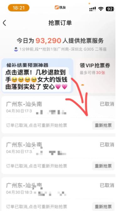 我就找了我另一个抢票的app, 铁友火车票上面真的有一个抢票订单;