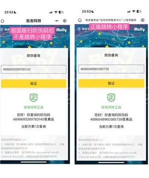 正版扫防伪码 “嗖” 的一下就跳到官方小程序啦;