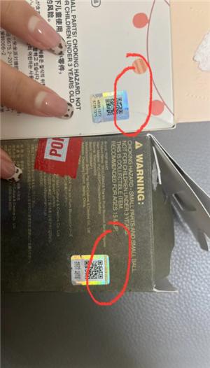 2、盒子上贴的防伪码,圈的地方明显不同,刮出数字的字体和间距不同,第三张浅色盒子假,深色盒子真。