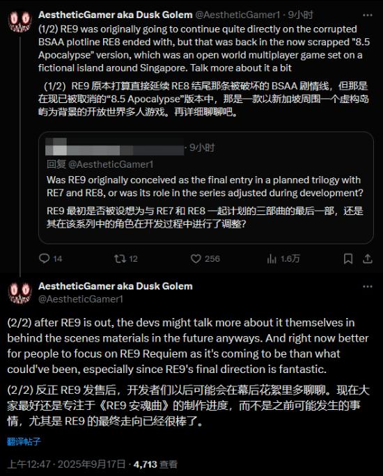 近期,资深《生化危机》爆料人AestheticGamer(别名Dusk Golem)发布了一则关于《生化危机 安魂曲》开发历程的独家信息。