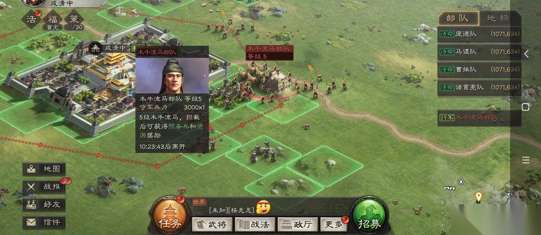 分城战略:木牛流马仅刷新于主城周边,但分城部队可前往主城区域拦截!关键点:拦截成功后,预备兵将注入执行拦截任务的分城,而非主城!根据你是要壮大主城核心,还是强化分城前线,精准选择出击部队的归属城池!