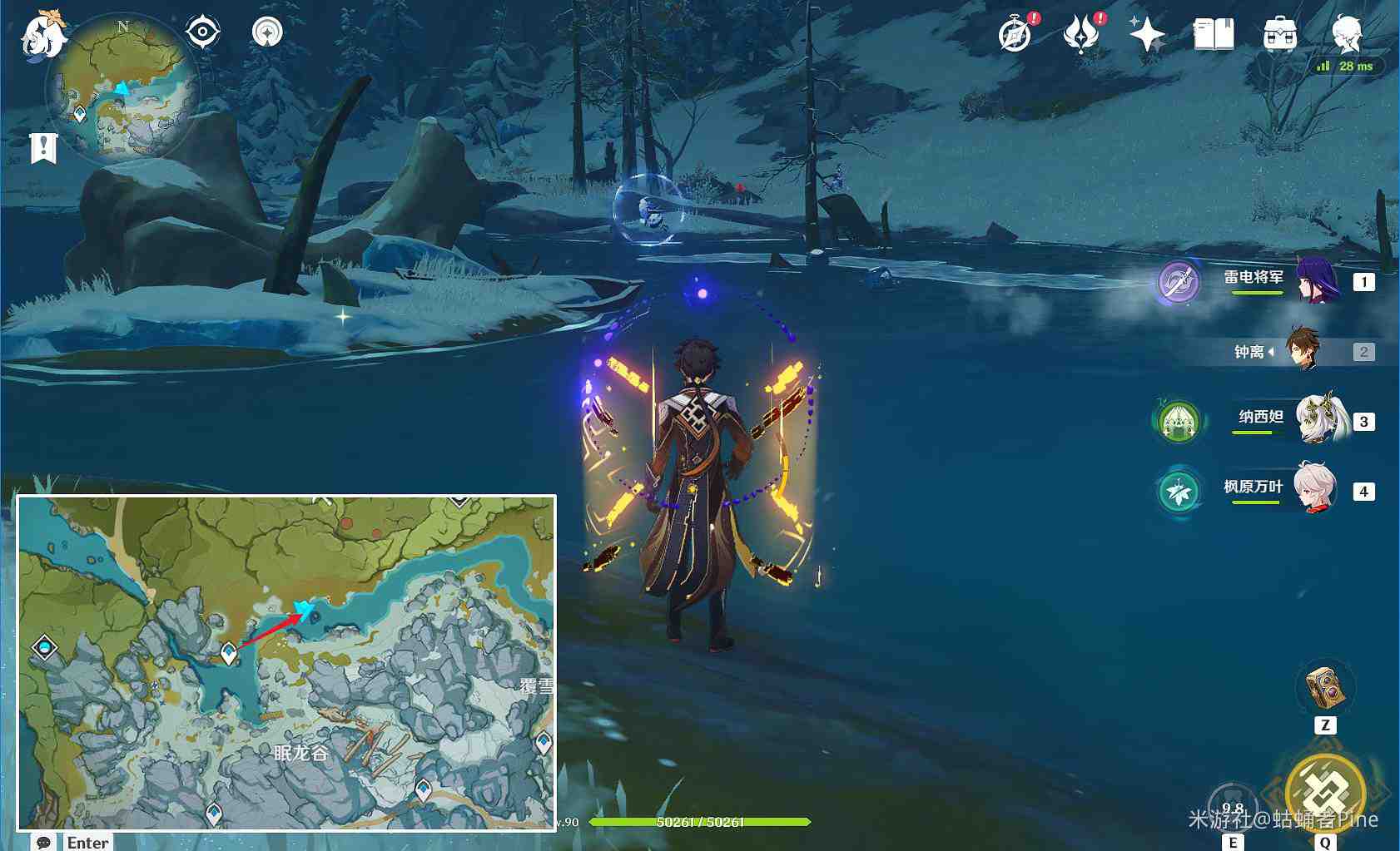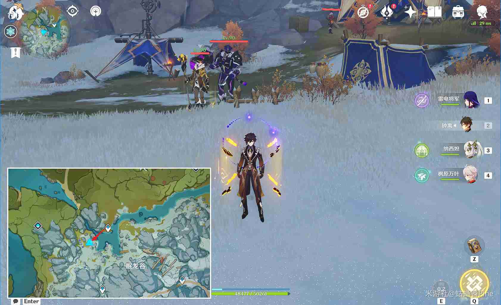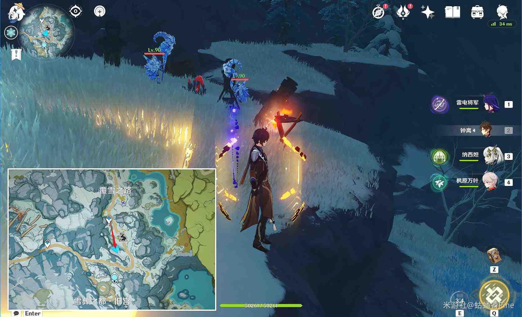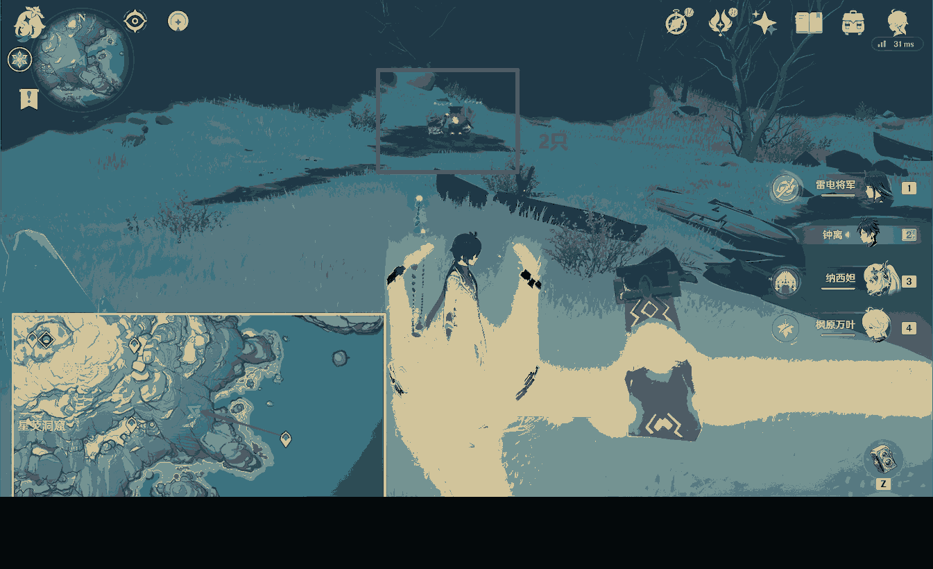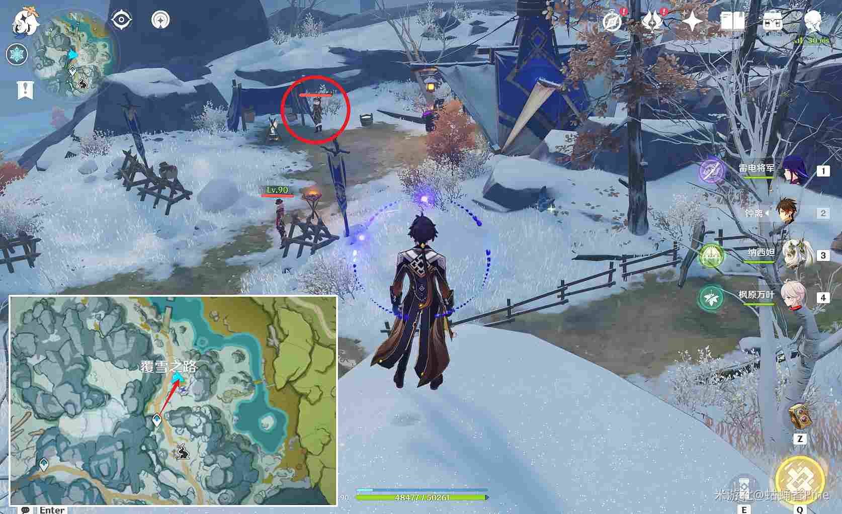 (2)覆雪之路传送锚点,向北方走一点,愚人众营地有1只