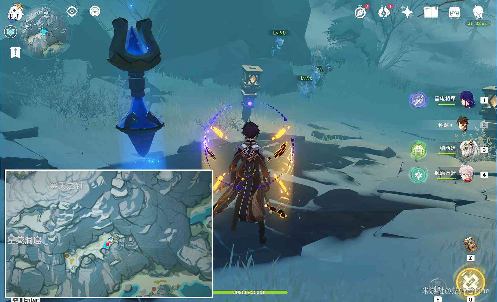 (1)雪山星荧洞窟东边传送锚点附近,有2只