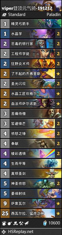 炉石传说战吼萨作为当前版本最强的卡组,成为很多小伙伴上分的首选,元气骑是对阵战吼萨少有的有优势的卡组之一了,这里给大家带来巨龙降临登顶元气骑卡组推荐。