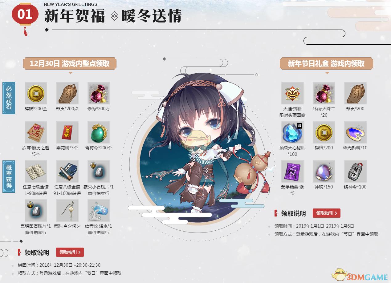 1月1日元旦-1月6日内,登录游戏即可领取节日·礼盒,内含天涯·贺新限时头顶图案。
