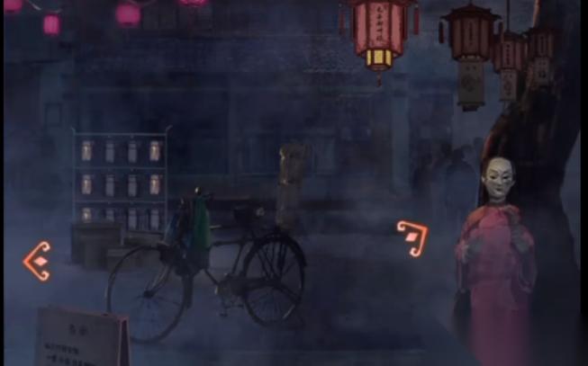 当敲打两次锣回到一更天之后,点击地面上掉落的孔明灯,并捡到一支笔,用笔在孔明灯的上面写下心愿,把蜡烛和风筝拐子挪到孔明灯上面组装。接着使用火柴点燃孔明灯中间的蜡烛,使得孔明灯飞起来。上升的孔明灯会把树枝上面被卡住的胭脂盒给撞下来,拿到一个胭脂盒。来到木偶戏台子处,把胭脂盒给木偶戏台子上面的木偶,通过交换得到一根梆子。来到黑白无常处,把梆子放在黑无常的手里面,通过告示牌上面切换到三更天的击打方式,按照敲锣、敲梆子、敲锣的顺序将时间切换到三更天。