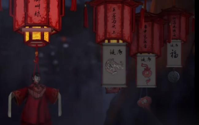 来到了二更天时间,场景随之变换为二更天的内容,来到木偶戏台处,把从转运盘上拆下来的红绳给戏台上的木偶,得到上吊的红娘木偶。返回到灯谜处,将红娘木偶挂在第一个灯谜的下面,拿到一张民国时期的报纸。结合最初得到的请柬上方三个符文,以及民国报纸上面的三个符文,将它们拼凑起来得到完整的密码线索。回到花轿用此密码打开盒子,拿到一面古董镜子。