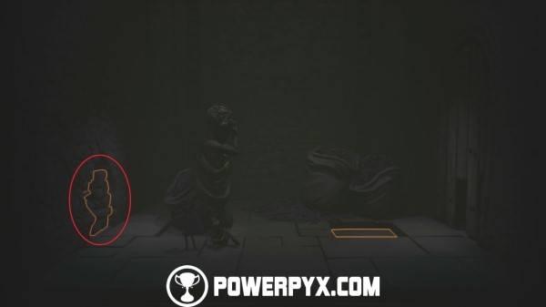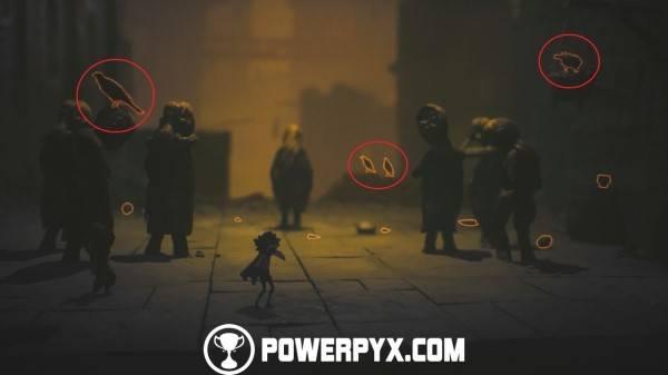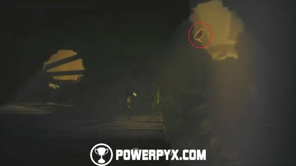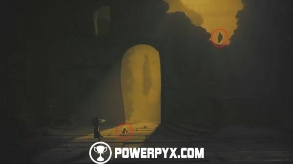 在与巨大婴儿互动(从洞中坠落)后不久,来到一个有许多雕像的区域,这里有四只乌鸦可以射击。