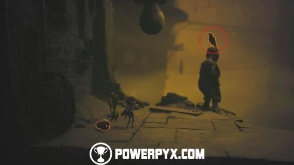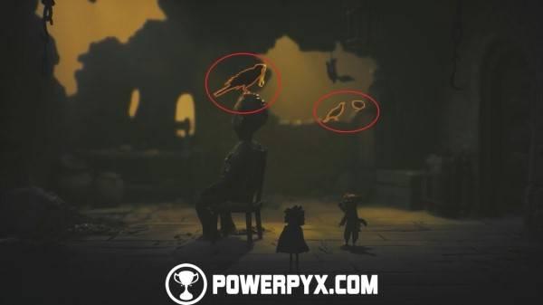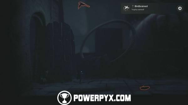 在拾取玩偶04之后不久,来到另一个有巨大婴儿的区域。在此区域高处射击这只乌鸦即可解锁【笨蛋乌鸦】奖杯。紧接着在这个区域的巨大婴儿面前还有三只乌鸦,所以如果之前漏掉了一两只也没关系。
