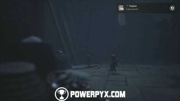 躲过巨大婴儿,在它跟着教堂钟声走开之后不久,来到一条小巷。在小巷尽头的左侧可以找到本章的最后一个玩偶。如果之前没有遗漏,可在此时解锁【玩具箱】奖杯。