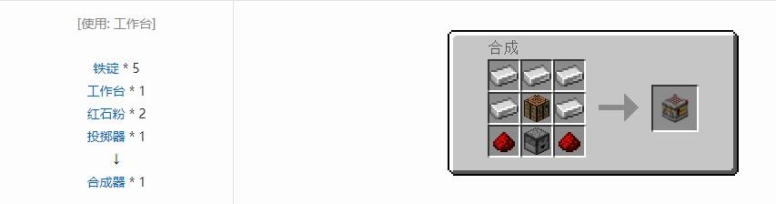 合成器是一种在接收到红石信号时自动合成并丢出产物的方块。